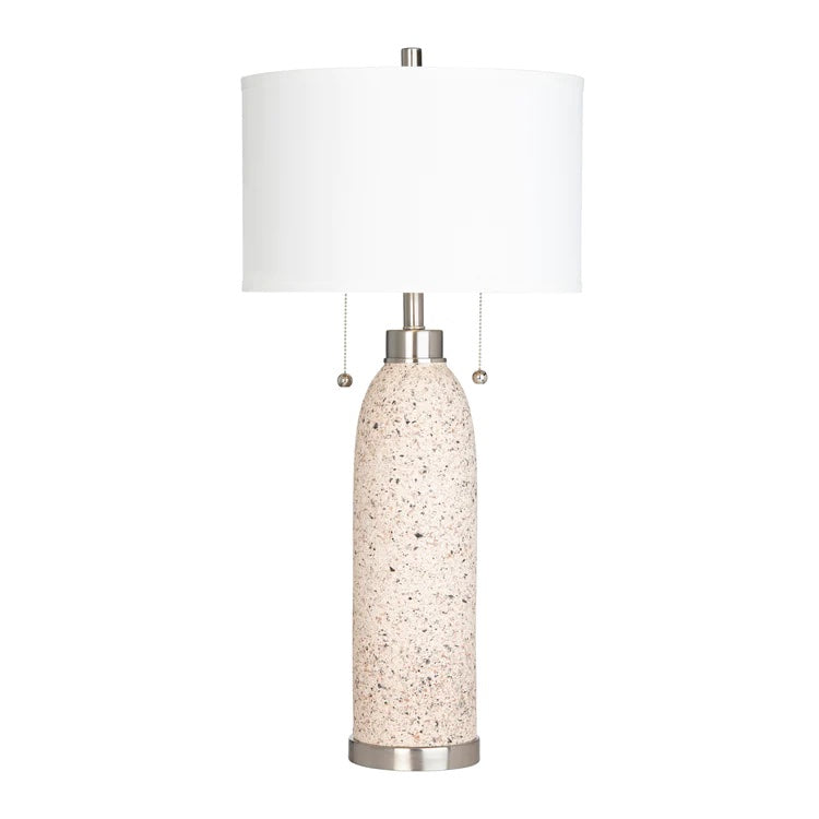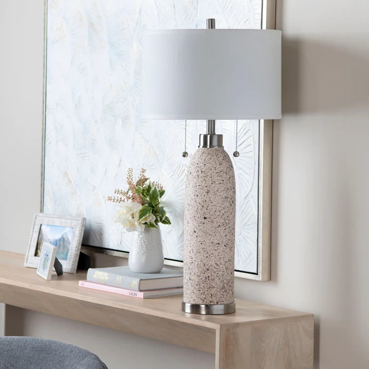 Celebrate the natural beauty of terrazzo with the Tristan Table Lamp by M Décore. With its earthy tones of sand and charcoal, this lamp is a testament to the raw and organic beauty of natural materials.