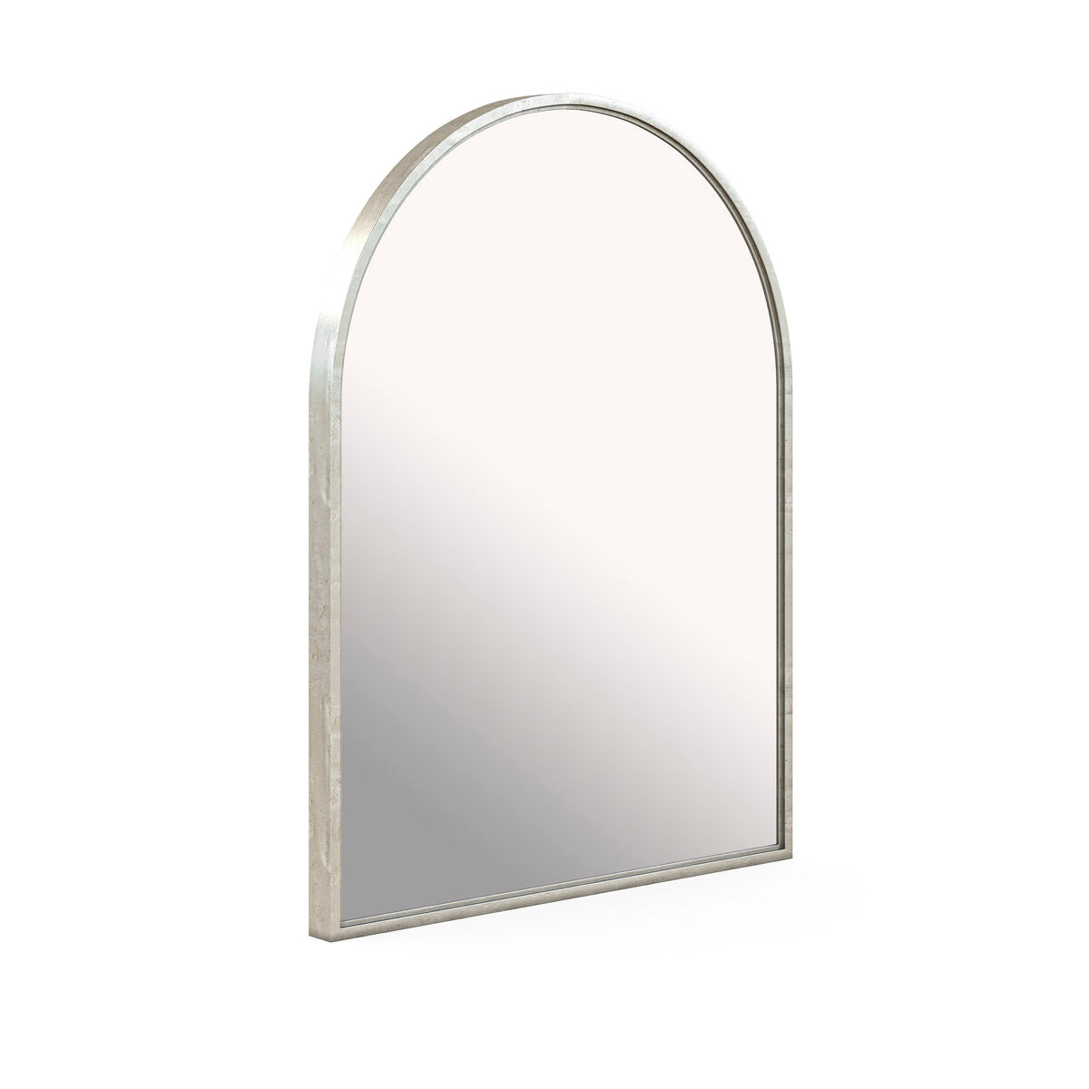Gaze through this arch to a bright new future in this graceful tribute to modern architecture. A 32in x 43in mirror is enclosed in a classically arched frame reminiscent of doors and windows, finished in an antique metal tone that adds a subtle touch of shine to any entryway, living room or vanity.